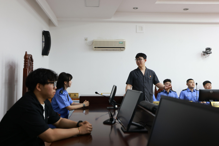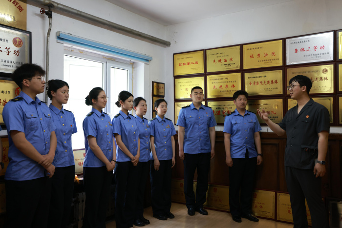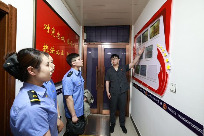 活动中,讲解员带领青年职工代表依次参观了诉讼服务中心、警营文化长廊、科技审判法庭、荣誉室等场所,详细介绍了法院诉讼服务、法庭设置、队伍建设等情况。